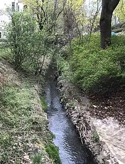 Die Uferbefestigung im heute als denkmalgeschützt geführten Bereich zwischen Schönebecker Straße und Bleckenburgstraße entstand am Anfang des 20. Jahrhunderts im Zuge des Ausbaus der Gegend als Standort für Wohnen mit gehobenem Anspruch. Das Bachbett wurde dabei auf beiden Seiten hoch mit Bruchsteinen eingefasst. An den Hängen der Befestigung befinden sich Ahornbäume.