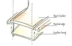 Bei der Turned Edge Technology wird das Oberleder über das Inlay geschlagen. Das Futterleder wird dann an der Unterseite des Inlays angebracht und mit dem Oberleder vernäht.