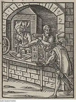 - ↑ Hans-Peter Trenschel: Die Würzburger Zunft der Schlosser, Büchsen-, Uhr- und Windenmacher. In: Ulrich Wagner (Hrsg.): Geschichte der Stadt Würzburg. 4 Bände; Band 2: Vom Bauernkrieg 1525 bis zum Übergang an das Königreich Bayern 1814. Theiss, Stuttgart 2004, ISBN 3-8062-1477-8, S. 448–453, hier: S. 448–450.