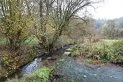 ![]() Die Ulfe in Ronshausen. Rechts die Straße „An der Ulfe“ | ||