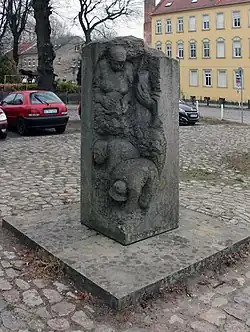 - Hugenotten, belebende Kraft (Sandsteinskulptur, 1990, Pfarrer-Hurtienne-Platz in Berlin-Französisch Buchholz)