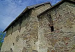Das Bauwerk ist parallel zur Hangneigung nach Südosten orientiert. An das etwa 60 m² große Langhaus schließt ein 4/6-Chor. In der talseitigen Südwest-Wand hat das Langhaus drei spitzbogige, schmale Fensteröffnungen. Das Mauerwerk ist aus Sammel- und Bruchsteinen errichtet. An den Innenwänden sind Freskenreste zu erkennen.