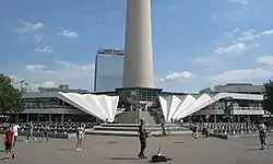 - ↑ Rolf Heider: Die Umbauung des Berliner Fernsehturms. Unveröffentlichtes Manuskript des gleichnamigen Vortrags im Deutschen Technikmuseum Berlin, Vortragsreihe „Ingenieurbaukunst in Berlin“, gehalten am 7. November 2019