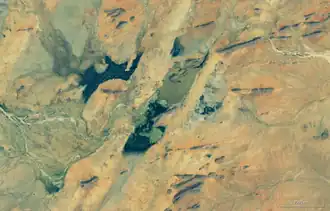 | Satellitenaufnahme des geteilten Umm-Badr-See | ||