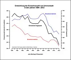 Durch seine Lage im Grenzgebiet der DDR war Ummerstadt schon vor dem Fall der Mauer einer starken Abwanderung ausgesetzt. Bereits 1952/1953 mussten Bürger, bei denen eine politische Gefahr gesehen wurde, durch Zwangsaussiedlungen an der innerdeutschen Grenze die Stadt verlassen. Hatte Ummerstadt bei Gründung der DDR 1949 noch fast tausend Einwohner, halbierte sich diese Zahl in den folgenden Jahrzehnten fast. Der Ortsteil Erlebach wurde bis 1982 vollständig geräumt. In der zweiten Hälfte der 1980er Jahre wurde Ummerstadt zur kleinsten Stadt der DDR. Nach 1990 setzte sich der Abwanderungstrend unverändert fort. 1992 stimmte die Bevölkerung in einem Bürgerentscheid für den Erhalt der Selbständigkeit Ummerstadts.