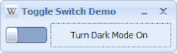 Für Windows Forms existiert keine Komponente, die einen Umschalter darstellt. Es können jedoch Kontrollkästchen als versenkbare Schaltfläche dargestellt werden. Intern wird dabei die Systemkomponente und deren Verhalten genutzt. Deshalb kann auch hier das Owner-Draw-Prinzip bei Bedarf genutzt werden, um die optische Darstellung zu verbessern. Von Drittanbietern existieren diverse Implementierungen von Schaltern. Ebenso können ActiveX-Komponenten von Drittanbietern auch in Windows Forms Anwendungen mit Hilfe eine Wrapper-Klasse eingebunden werden. Unter Visual Studio existiert ein Assistent, der eine solche Wrapper-Klasse automatisch erstellen kann.