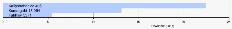 Im Distrikt gibt es mit dem Distrikthauptort Kailashahar und Kumarghat zwei städtische Siedlungen. Statistisch gesehen gilt allerdings auch Fatikroy als Stadt (census towns).