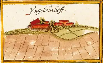 ![]() Ansicht vom „Vngeheuerhoff“. Zeichnung aus dem 17. Jahrhundert von Andreas Kieser
