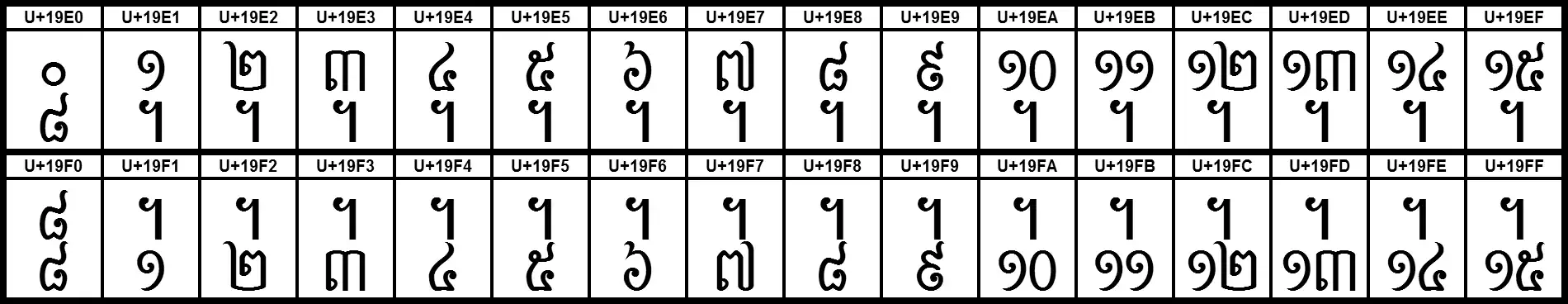 | U+19E0 (6624) | ᧠ | KHMER SYMBOL PATHAMASAT | Khmer-Symbol Pathamasat |