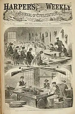Im Amerikanischen Bürgerkrieg versorgte das Ordnance Department die Union Army mit großen Mengen Kriegsmaterial. Eine ähnliche Organisation der Confederate States Army versuchte verzweifelt den Bedarf der Südstaaten zu decken, konnte jedoch den größeren Produktionskapazitäten der Nordstaaten nur wenig entgegensetzen. Am Ende des Krieges dienten 64 Offiziere, 600 Mannschaften und 9000 Zivilisten unter dem Ordnance Department.[2] Die Arbeit war nicht ungefährlich. So starben 1862 bei der Explosion im Allegheny Arsenal 78 Zivilarbeiter, die meisten davon Frauen.[3]