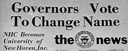 Ursprünglich gegründet wurde die Hochschule 1920 als „New Haven YMCA Junior College“, einer Zweigstelle der Northeastern University of Boston. Betriebswirtschaft und Ingenieurs-Ausbildung waren die Schwerpunkte. Eng zusammengearbeitet wurde damals mit der Yale University.[2] Unabhängig wurde das College 1926, firmierte seitdem als „New Haven College“. Erst 1970 wurde das College offiziell staatlich als Universität anerkannt, was wiederum mit einer Namensänderung zur heutigen Bezeichnung „University of New Haven“ verbunden war.