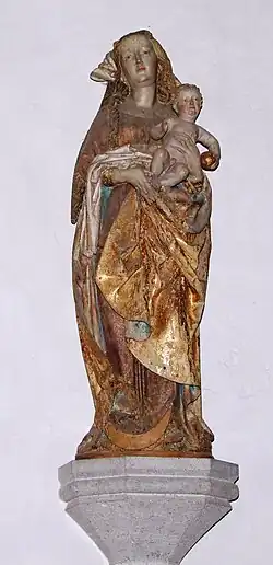 Die Madonna an der Ostseite des nördlichen Seitenschiffes wurde um 1500 von Ivo Strigel geschaffen. Sie befand sich längere Zeit in einem Bauernhof in Hawangen, von dem sie ihren Namen hat. Die Mutter Gottes in goldenem Mantel mit blauem Futter trägt das Jesuskindlein auf dem Arm. Dieses hält die Weltkugel in der linken Hand. Die Hawanger Madonna gehört zum Typus einer Mondsichelmadonna: Unter ihrem rechten Fuß ist eine goldene Mondsichel angebracht mit einem männlichen Gesicht, von dem vermutet wird, dass es ein Selbstbildnis des Memminger Künstlers darstellt. Sie steht auf einem im 20. Jahrhundert angebrachten Steinsockel.