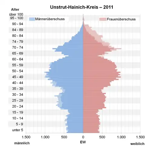 - ↑ Datenbank Zensus 2011, Unstrut-Hainich-Kreis, Alter + Geschlecht