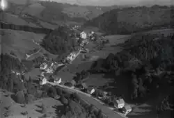 Historisches Luftbild der Spinnereien Ägeri von Walter Mittelholzer zwischen 1918 und 1937