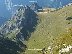 Nördlich des Gipfels liegt das Tal Dolina Kościeliska, konkret sein Hängetal Dolina Pyszniańska.