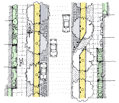 Idealtypische Zonierung eines Straßenfreiraumes[7]