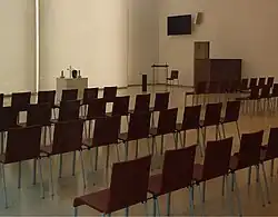 Blick in die Verabschiedungshalle, hier mit flexibler Bestuhlung vorbereitet