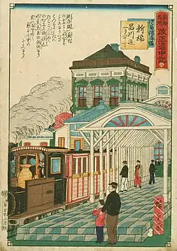 Hiroshige III. war der Sohn eines Schiffszimmermanns und wurde von einem Restaurant-Besitzer namens Momogawa (百川) aufgezogen. Er wurde dann ein Schüler Utagawa Hiroshiges und erhielt von seinem Lehrer den Namen Shigemasa. Nachdem Hiroshige II. sich 1865 von seiner Frau, einer Tochter Hiroshiges, getrennt und nach Yokohama zurückgezogen hatte, nannte Shigemasa sich selbst Hiroshige II., obwohl er bereits der dritte Träger dieses Namens war. Als Künstler ist er von geringerer Bedeutung, aber er ist interessant von seiner Themenwahl her: Auf seinen Drucken sind die Veränderungen Tokios, die mit der Meiji-Restauration verbunden waren, dargestellt, insbesondere auch die neuen technischen Errungenschaften wie Eisenbahnen und ihre Bahnhöfe.