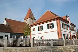 - Das Pfarrhaus Utzwingen, ein zweigeschossiger Walmdachbau mit Ecklisenen um 1750[9]