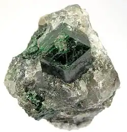 - ↑ a b c d e Uvarovite. In: John W. Anthony, Richard A. Bideaux, Kenneth W. Bladh, Monte C. Nichols (Hrsg.): Handbook of Mineralogy, Mineralogical Society of America. 2001 (englisch, handbookofmineralogy.org [PDF; 73 kB; abgerufen am 16. September 2024]).