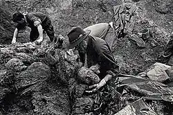 Die Täter hoben Massengräber direkt dort aus, wo die Erschossenen lagen, oder in unmittelbarer Nähe. Die Toten wurden in Massengräbern unterschiedlicher Größe und in Einzelgräbern verscharrt. Bis 2001 identifizierten forensische Experten insgesamt 21 Massengräber, in denen sich nachweislich Opfer des Massakers von Srebrenica befanden. 14 von diesen Massengräbern sind sogenannte primäre Massengräber, in denen die Getöteten direkt nach der Exekution vergraben wurden. Von diesen 14 wurden acht später zerstört. Die Leichen wurden dabei entfernt und an anderer Stelle erneut vergraben. Oft lagen diese sogenannten sekundären Massengräber – bis 2001 wurden sieben entdeckt – in weiter entfernten Gegenden. Die Umbettungen erfolgten, weil die bosnisch-serbischen Täter die Massenmorde vertuschen wollten. Im Urteil gegen Krstić werden 18 weitere Massengräber erwähnt, die mit dem Massaker in Verbindung stehen, bis zum Ende des Prozesses gegen Krstić jedoch noch nicht untersucht werden konnten. Bis 2009 hatten Forensiker 37 Sekundär-Massengräber entdeckt.[41] Die Überreste von zirka 8000 Opfern wurden seit Ende des Bosnienkrieges exhumiert. 6838 Leichen konnten bis Juli 2012 namentlich zugeordnet werden.[42]