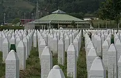 Am 20. September 2003 weihte der frühere US-Präsident Bill Clinton vor Tausenden von Hinterbliebenen die offizielle Opfergedenkstätte Potočari ein. Die Baukosten betrugen 5,8 Millionen US-Dollar.[111][112][113][114] Jährlich gedenken im Juli Zehntausende der Opfer. Zudem werden hier weiterhin Tote des Kriegsverbrechens begraben. Im Sommer 2019 lag die Zahl der dort Bestatteten bei mehr als 6.000.[115][116]