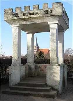 Anlässlich des 100. Jahrestages der Völkerschlacht von Leipzig entstanden in zahlreichen Orten Deutschlands Denkmäler, die an das Ereignis erinnern. Während die Völkerschlachtdenkmäler in den Dörfern oft aus schlichten Steinen oder Tafeln bestehen, haben sich einige kleinere Städte für andere Varianten entschieden. Eine solche findet sich in Bad Sülze.