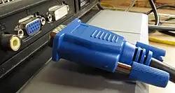 Mit VGA-Stecker bezeichnet man einen 15-poligen Mini-D-Sub-Stecker (auch D-Sub-Mini-Anschluss genannt) mit drei Anschlussreihen (Typ DE-15).