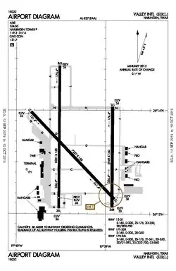 - ↑ a b c AirportIQ 5010: Valley International. GCR1.com, abgerufen am 21. September 2019 (englisch).