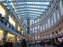 Der zentrale Teil ist durch Brücken mit einer freistehenden, elliptischen Kolonnade verbunden, die den Komplex umgibt und die Lesesäle enthält. Die äußere Erscheinung des Gebäudes erinnert an das Kolosseum in Rom. Der gesamte Komplex umfasst auch ein Hochhaus, Läden, Restaurants und ein unterirdisches Parkhaus.