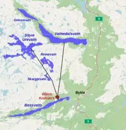 - ↑ Urevatn - eitt av inntaka til Holen Kraftstasjon. Otra Kraft (norwegisch), abgerufen am 9. September 2022.