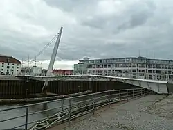 Die Schönebecker Aue fließt wie ursprünglich wieder direkt in den Hafen. Eine Seilzugklappbrücke verbindet West- und Ostufer, an dem sich das Speicherquartier und das aus dem Einkaufszentrum Haven Höövt hervorgegangene Kontor zum Alten Speicher befinden. Die Brücke befindet sich nahe der Stelle, an der von 1872 bis 1953 eine eiserne Drehbrücke bereits beide Ufer vom Utkiek zum Hafenhöft mit seiner Signalstation verband. An der Nordkaje des Hafens betrachtet „Reckers Familie“, eine bronzene Figurengruppe des Bremer Künstlers Thomas Recker, mit Ferngläsern das Treiben im Hafen und auf dem Bahnhofsplatz.