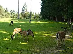 Seit dem Anfang der 2010er Jahre galt der Veldensteiner Forst auch als Wolferwartungsgebiet. Zunächst wurden nur einzelne Individuen gesichtet, die von dem auf dem benachbarten Truppenübungsplatz Grafenwöhr beheimateten Rudel abgewandert sein dürften.[11] Bereits in den Jahren 2016/17 brachten Genanalysen an Wildtierrissen Gewissheit[12] und seit Anfang 2018 ging man von einer Paarbildung aus.[13] Anfang März 2018 wurde ein Wolfspaar durch Spuren an einem Wildriss bestätigt.[14] Im September 2019 wurde durch Aufnahmen von Wildtierkameras bekannt, dass das im Veldensteiner Forst heimisch gewordene Wolfpaar zum zweiten Mal vier Jungtiere erfolgreich aufgezogen hat.[15]