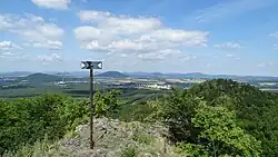 Die Aussicht vom Gipfel ist sehr umfassend. Im Norden reicht der Blick bis zur Bergkette des Lausitzer Gebirges, im Westen ins Böhmische Mittelgebirge und im Süden in die hügelige Waldlandschaft von Kummergebirge und Daubaer Schweiz. Im Osten wird der Blick vom Jeschkenkamm begrenzt. Markante Berge im Blickfeld sind der Ralsko (Roll), der Ještěd (Jeschken) und der Bezděz (Bösig).