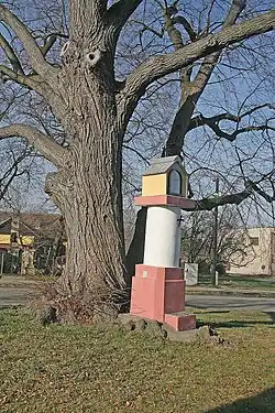 - Nischenkapelle des hl. Johannes von Nepomuk, auf dem Dorfplatz, errichtet zu Beginn des 19. Jahrhunderts.[9]