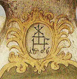 Auch die Datierung des Stückes ist umstritten. In der Kartusche über dem eigentlichen Gemälde ist die Jahreszahl 1606 zu lesen, jedoch wurde das Gemälde wegen des empfindlichen Trägermaterials, von dem die Farbe abplatzte, mehrfach überarbeitet. Bei der letzten Restaurierung kam man zu dem Ergebnis, die Jahreszahl müsse eigentlich 1706 lauten, was aber hinsichtlich des Bildinhalts zu einigen Anachronismen führt.