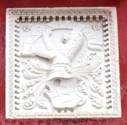 Der vordere Teil der Fassade ist asymmetrisch gestaltet. Im ersten Stock befindet sich ein verziertes Gesims mit schlanken Bögen. Dieses wird von einfach profilierten Kragsteinen getragen. Über den Triforien befinden sich vier Medaillons, die äußeren sind Halbmedaillons.