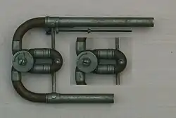 Stellventil an einem Stimmbogen; Stellungen: links – direkter Durchgang; rechts – Durchgang mit Verlängerung durch einen kurzen Zug