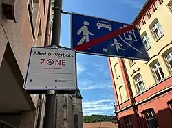 In manchen Städten gibt es Alkohol-Verbotszonen, so zum Beispiel seit August 2021 in Meiningen.[3]
