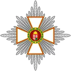 Das Großkreuz konnte von 1939 bis 1944 als Zeichen höchster Wertschätzung mit der Stephanskrone (Szent Korona, „Heilige Krone“) verliehen werden, die vorrangig an Staats- und Regierungschefs zur Verleihung kommt, getragen werden. Ebenso konnte die Klasse mit der Krone auch mit einer Collane verliehen werden. Alle Klassen können zudem für Kriegsverdienste auch mit Kriegsdekoration bzw. Kriegsband oder Kriegsdekoration bzw. Kriegsband und Schwertern verliehen werden.