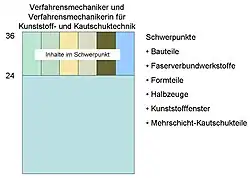 Die Ausbildungsordnung wurde von 2010 bis 2012 erneut modernisiert.[2] Statt der Schwerpunkte finden sich nun sieben Fachrichtungen. Die Bezeichnungen wurden dabei weitgehend beibehalten, lediglich statt „Faserverbundwerkstoffe“ wird nun von „Faserverbundtechnologie“ gesprochen. Neu ist die Fachrichtung „Compound- und Masterbatchherstellung“, die sich mit der Herstellung von Kunststoffgemischen und Kunststoffadditiven befasst.