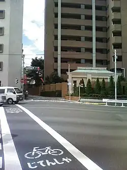 Auf Gemeindestraßen in Innenstädten gilt meist eine Höchstgeschwindigkeit von 40 km/h und in Seitenstraßen von 30 km/h.[12] In der Präfektur Tokio beträgt die gesetzliche Höchstgeschwindigkeit 40 km/h für Gemeindestraßen, jedoch sind in den anderen Präfekturen Japans auf Gemeindestraßen bis 60 km/h möglich, da dort keine allgemeinen Höchstgeschwindigkeiten unterhalb der Präfekturstraßen erlassen wurden.[13]