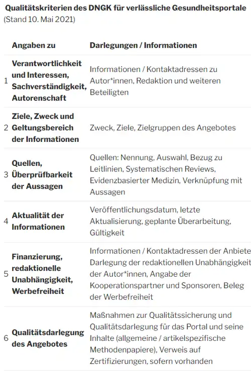 - Programm Verlässliches Gesundheitswissen des DNGK - Qualitätskriterien