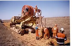 Selbstfahrende Verlegegeräte sind speziell entwickelte Fahrzeuge oder Bagger, Traktoren, Planierraupen o. Ä. als Grundfahrzeug mit angebauten Verlegewerkzeugen.