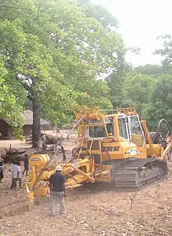 Um bei ungünstigen Bodenbedingungen die erforderlichen Zugkräfte zu erbringen und große Bodenschäden zu vermeiden, kommen Maschinen mit großflächigen Laufwerken und speziellen Platten zum Verdichten des Bodens zum Einsatz.