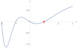 Tatsächlich sind diese 5 Beispiele die – sieht man von einem „unendlich fernen Punkt“ ab, der nicht im Graphen enthalten ist – einzigen rationalen Punkte auf der elliptischen Kurve , also wird keine Kombination rationaler Zahlen außer den oben genannten die Gleichung erfüllen.[2] Dies zu sehen ist jedoch mathematisch eine schwierige Aufgabe.