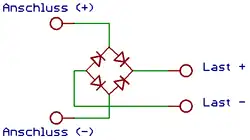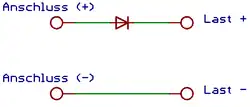 - Diode antiparallel zur Versorgungsspannung; bei Verpolung wird die Spannungsquelle über die Diode kurzgeschlossen, daher ist eine Sicherung oder Kurzschlussfestigkeit nötig