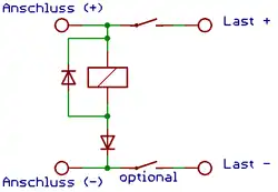 - Ein Relais schaltet mit Hilfe einer Diode die Versorgungsspannung zum Verbraucher durch