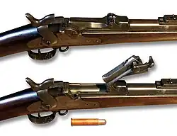 Der Klappenverschluss ist eine sehr alte Variante eines Verschlusses für Handfeuerwaffen. Entsprechende Einzelstücke sind aus dem 16.- oder gar 15. Jahrhundert bekannt.[2][3] Den ersten modernen Klappenverschluss mit einer Einheitspatrone konstruierte Sylvestr Krnka im Jahre 1849.[4]