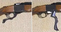 gehindert. Bei Repetierwaffen (Winchester (Gewehr)) wird zum Nachladen das Kniegelenk durch die Betätigung des Ladehebels geknickt, der Verschluss läuft zurück, zieht die Patronenhülse aus und schiebt im Vorlauf die neue Patrone in das Patronenlager.